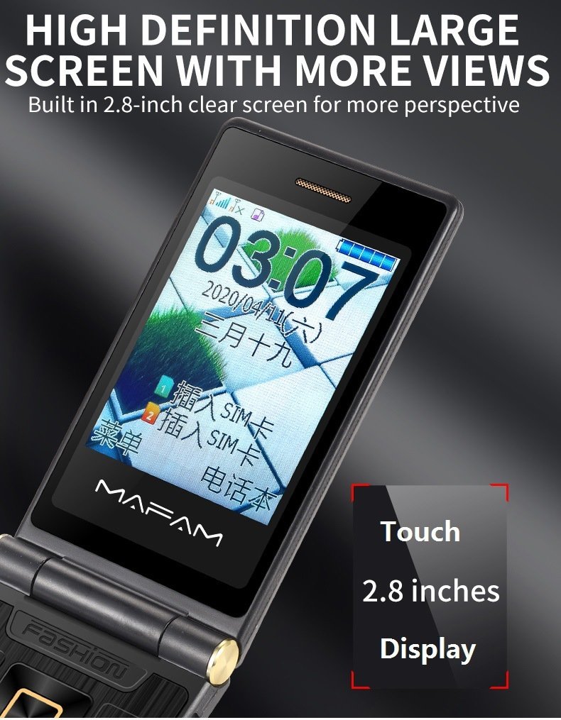 Main screen size: dual screen, internal screen 2.8 inches, external screen 2.4 inches